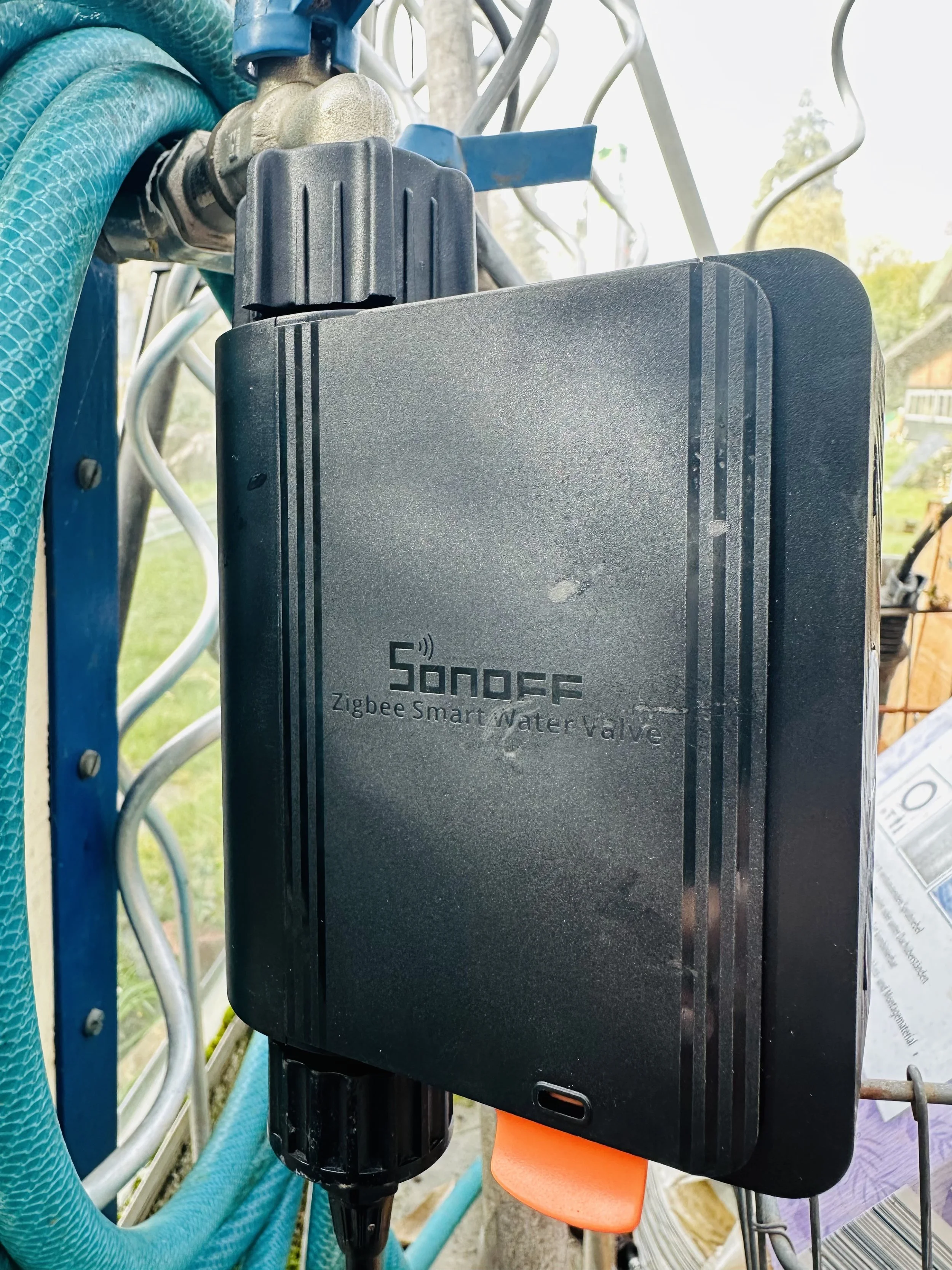 Bislang haben wir diese smarte Bewässerungsautomatik mit einem stinknormalen Bewässerungsschlauch von Aldi gekoppelt und in die “Home“ App des iPhones integriert.