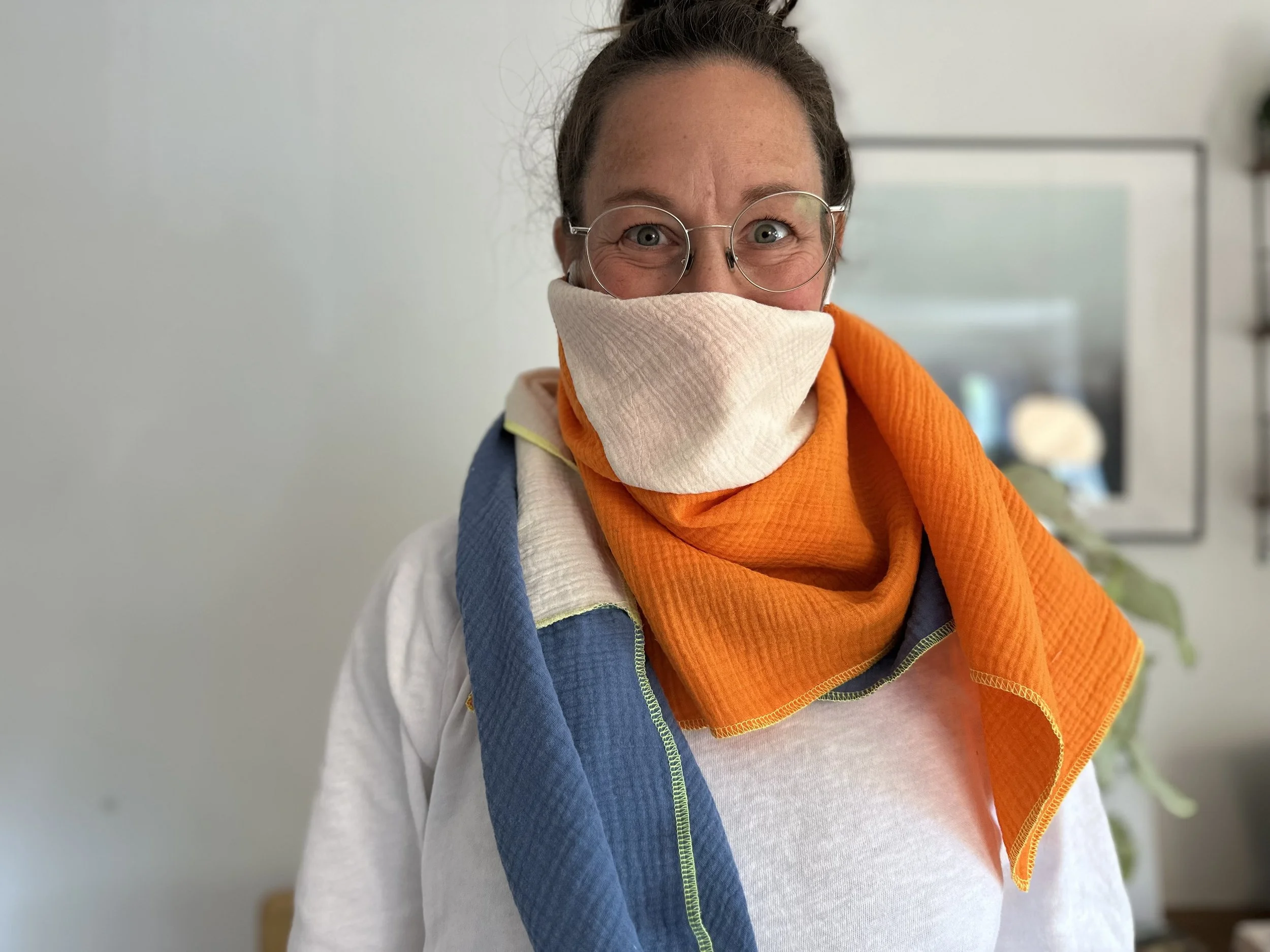 Bei uns Zuhause sind die Musselinschals echte Allzwecktücher zum Kuscheln.