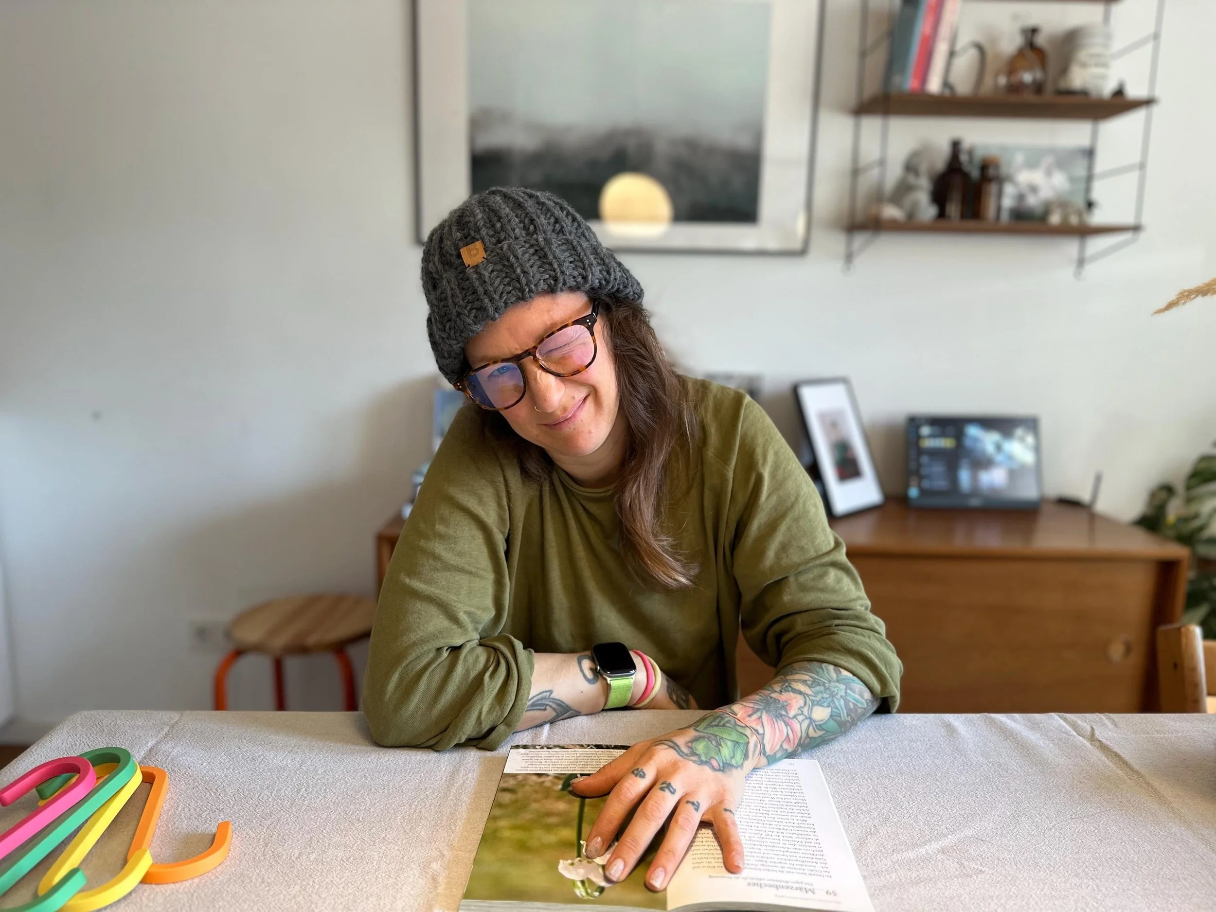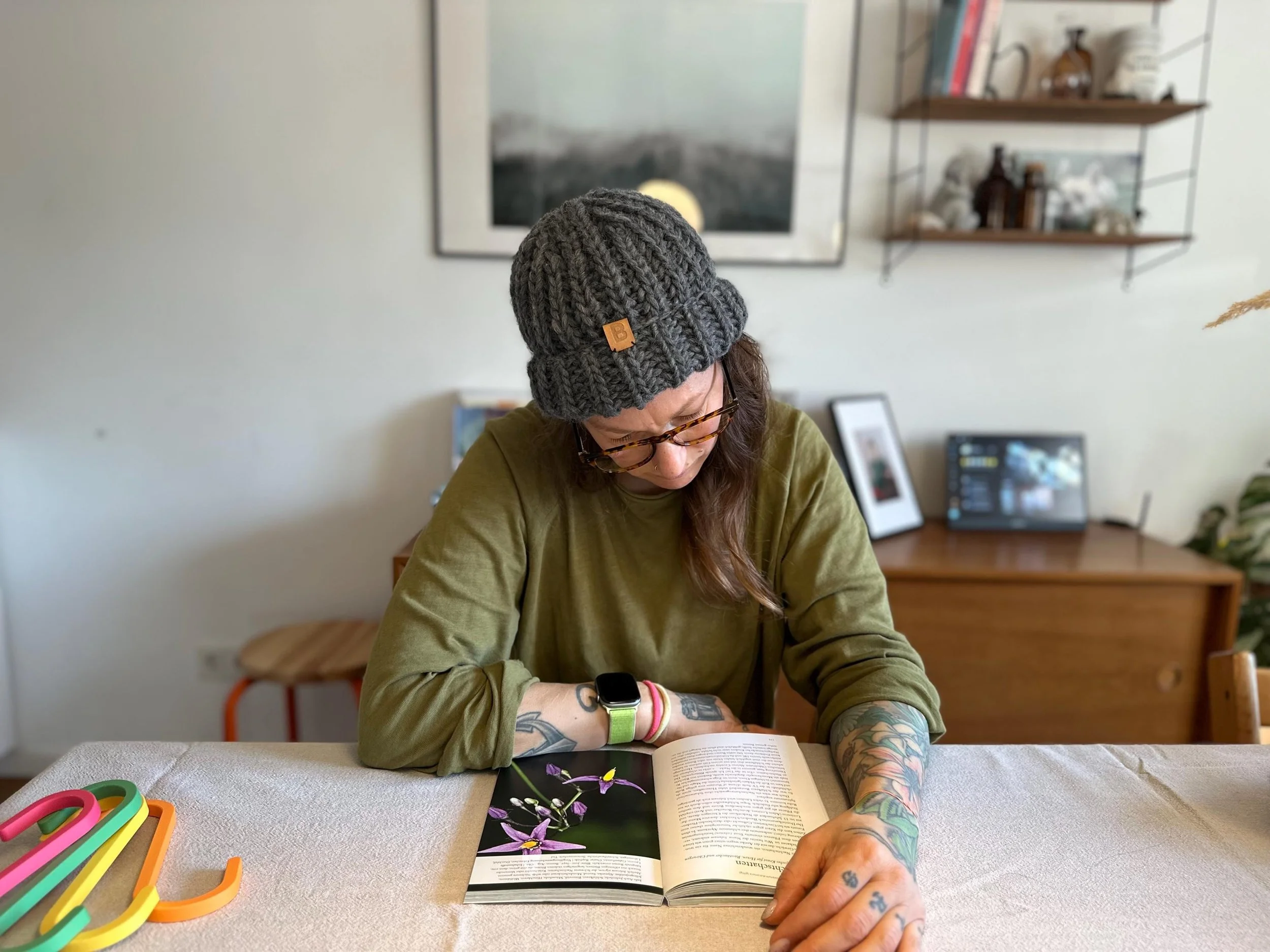 An dieser Mütze mag ich besonders die etwas gröbere Strickart, wodurch etwas mehr Luft durch die Mütze weht, als bei eng gestrickten Garnen. Perfekt für den Herbst oder Menschen denen schnell zu warm wird, unter einer Strickmütze.