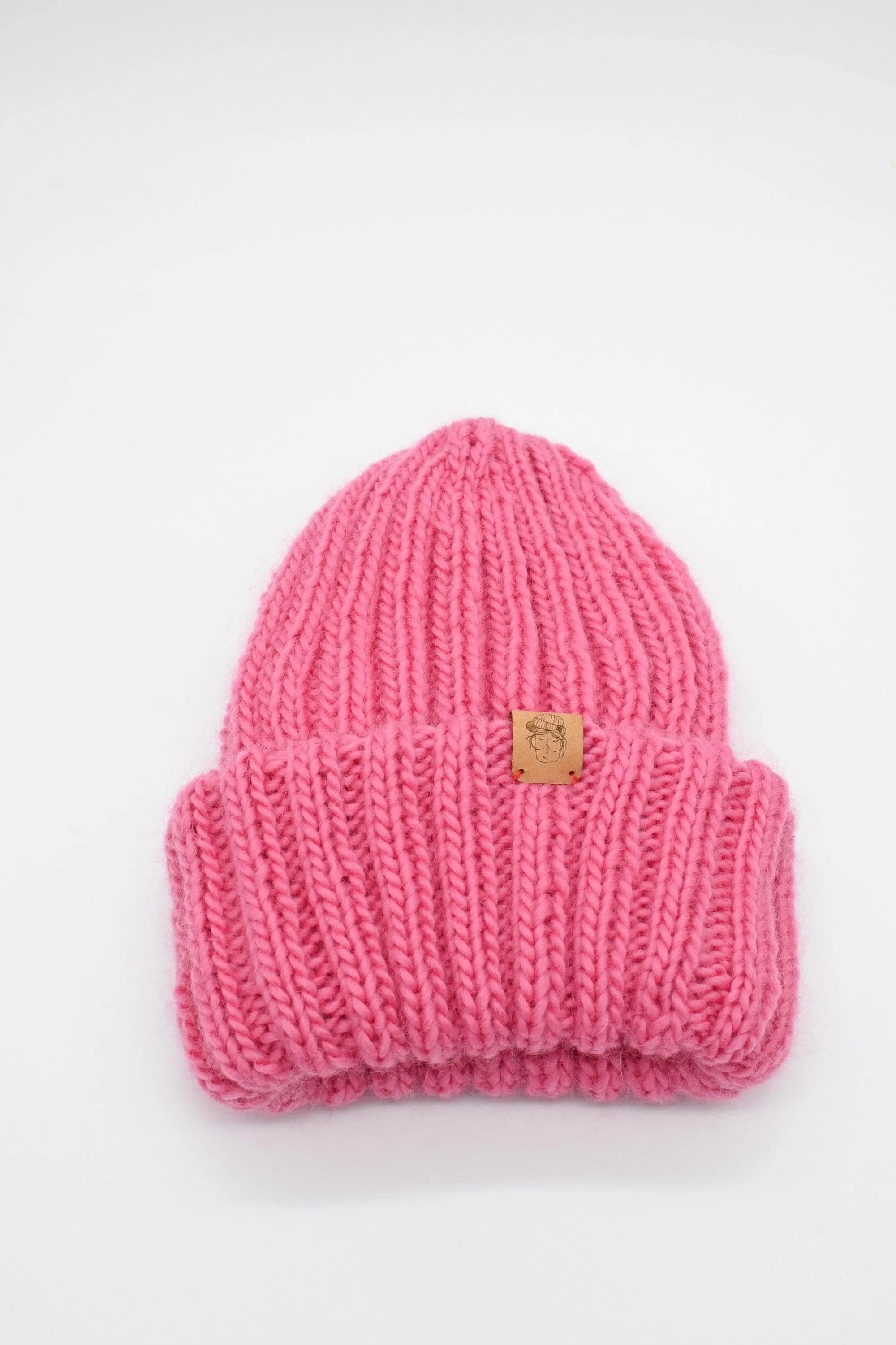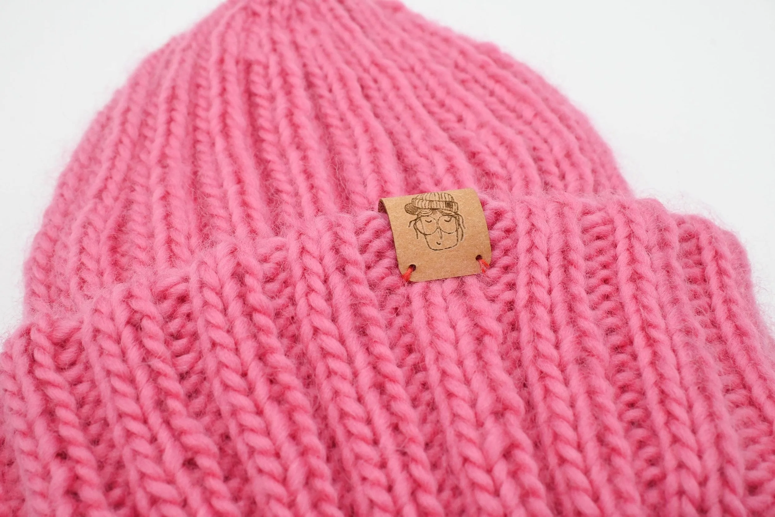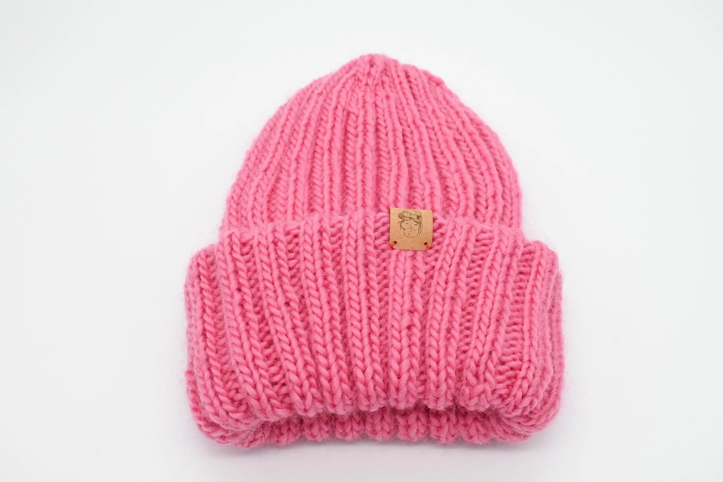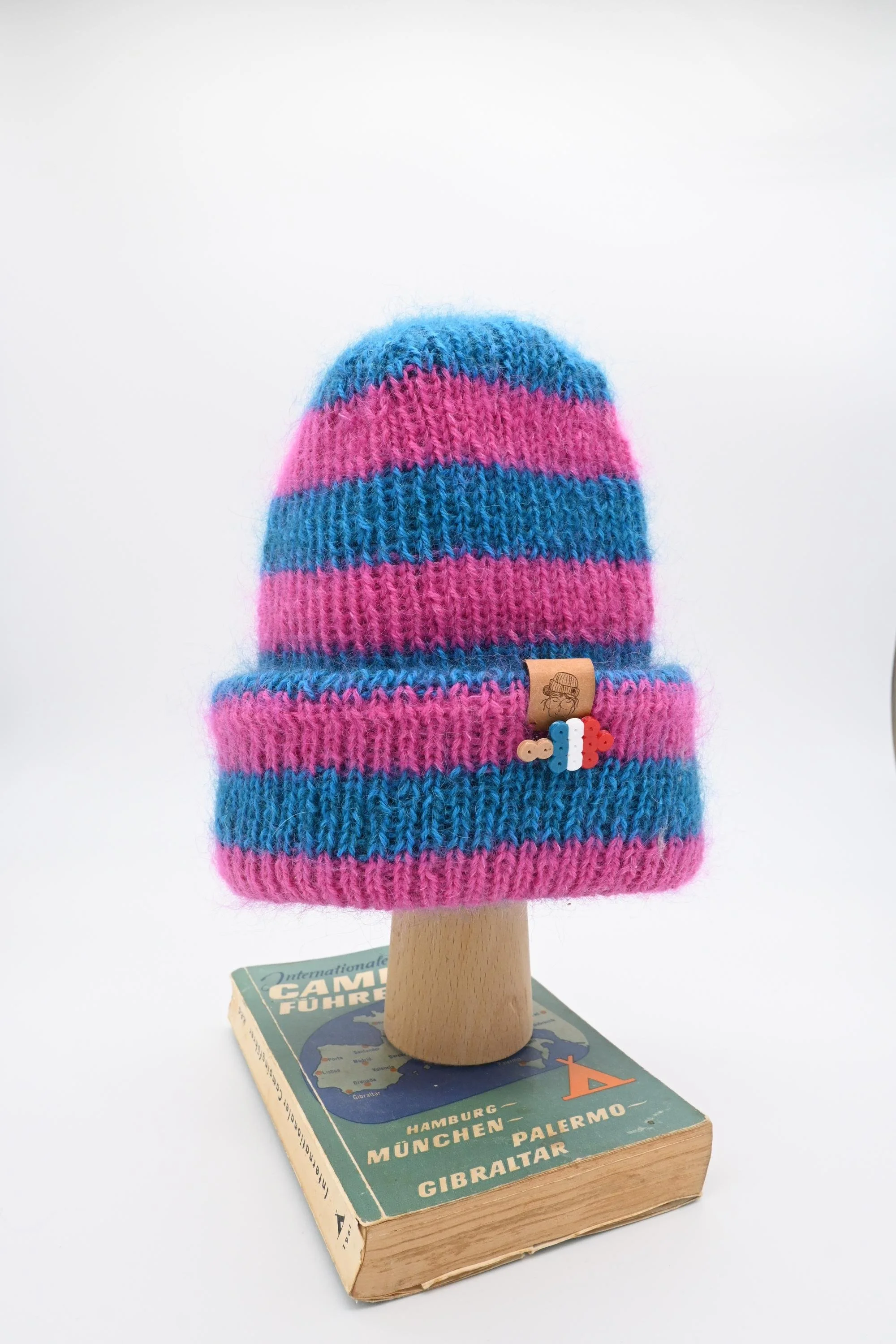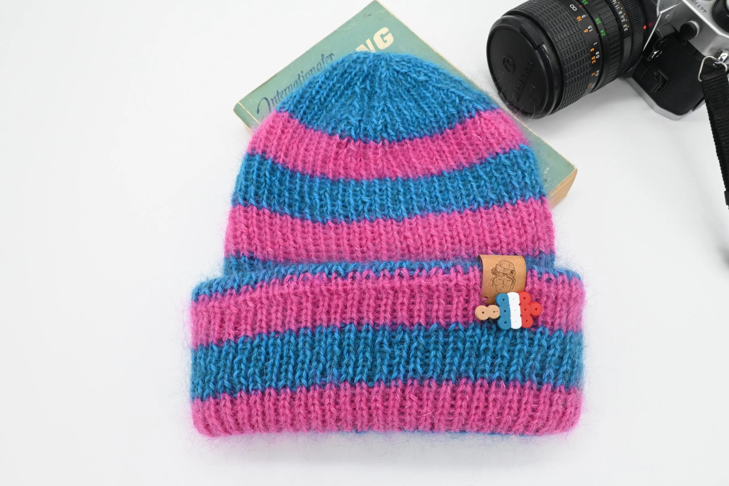 Handgestrickte Mütze MJUC Einfacher Umschlag | Türkis-Pink | Merinowolle | Super weich | Unisex | Weihnachtsgeschenk | Geburtstagsgeschenk