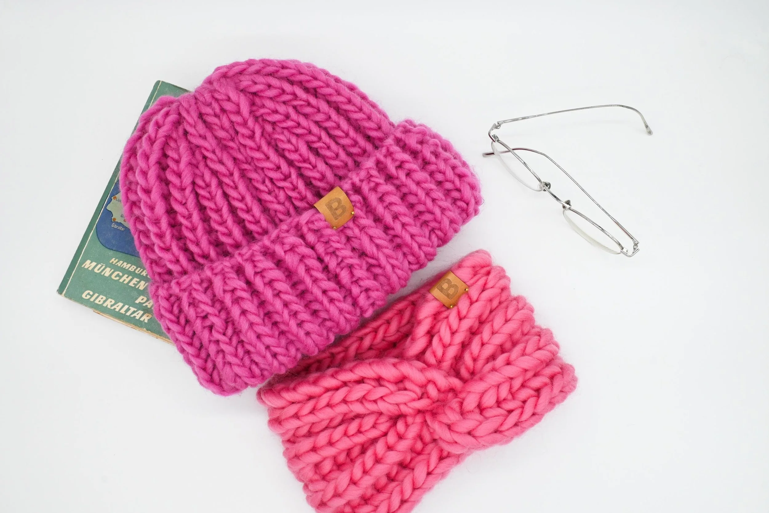Handgestricktes Stirnband VARM| Pink | reine Schurwolle | Geschenk für Frauen | Weihnachtsgeschenk