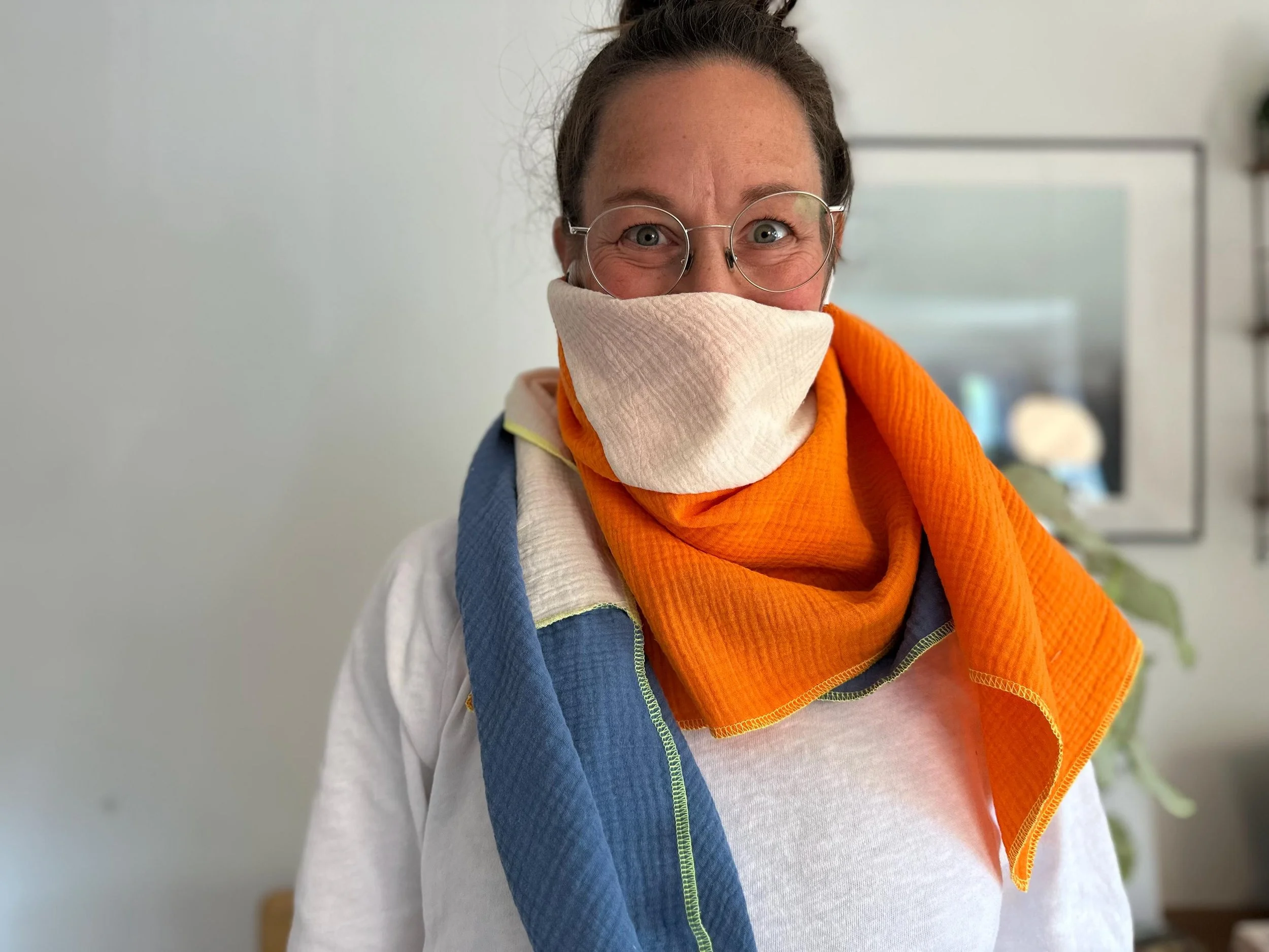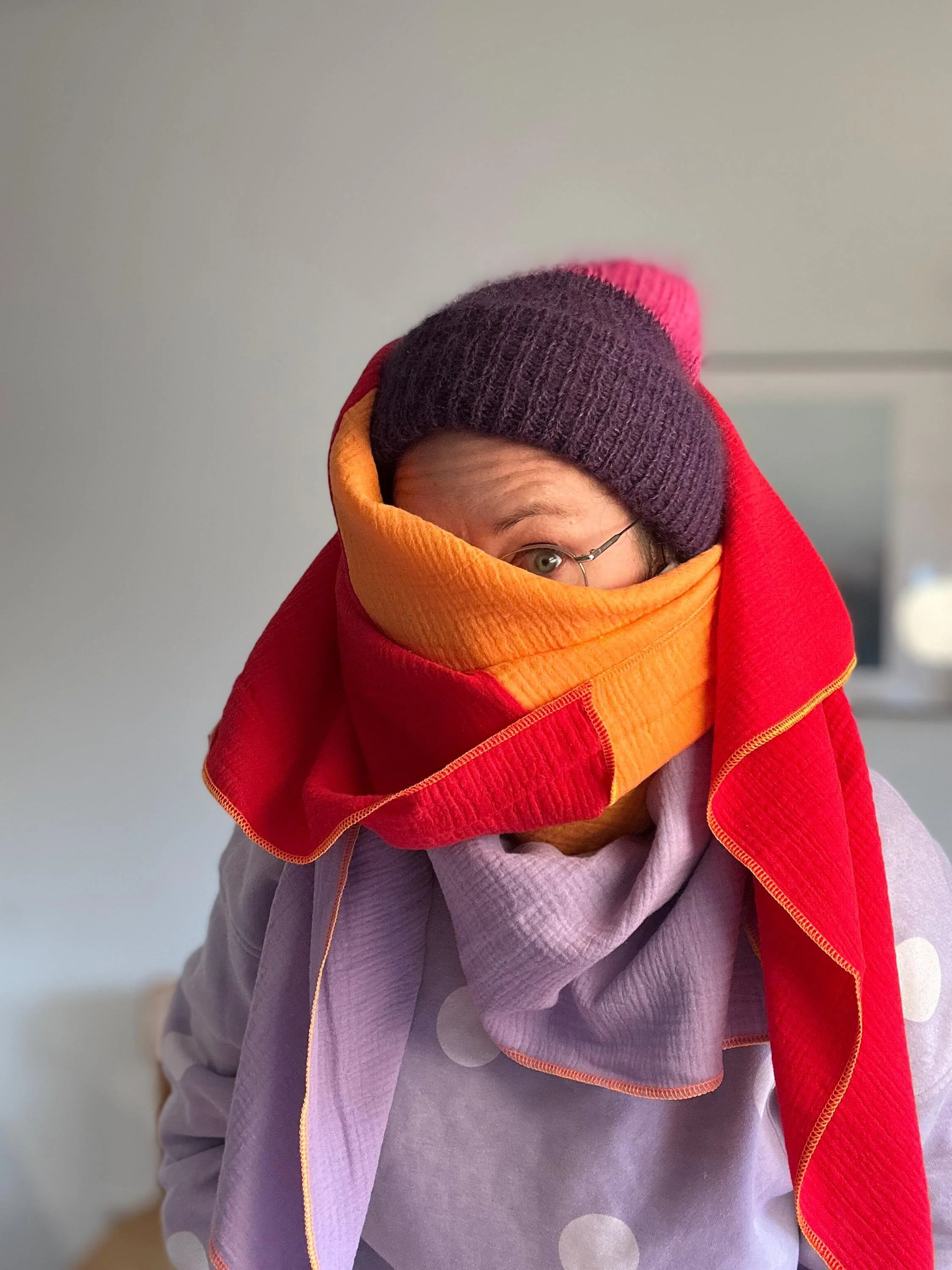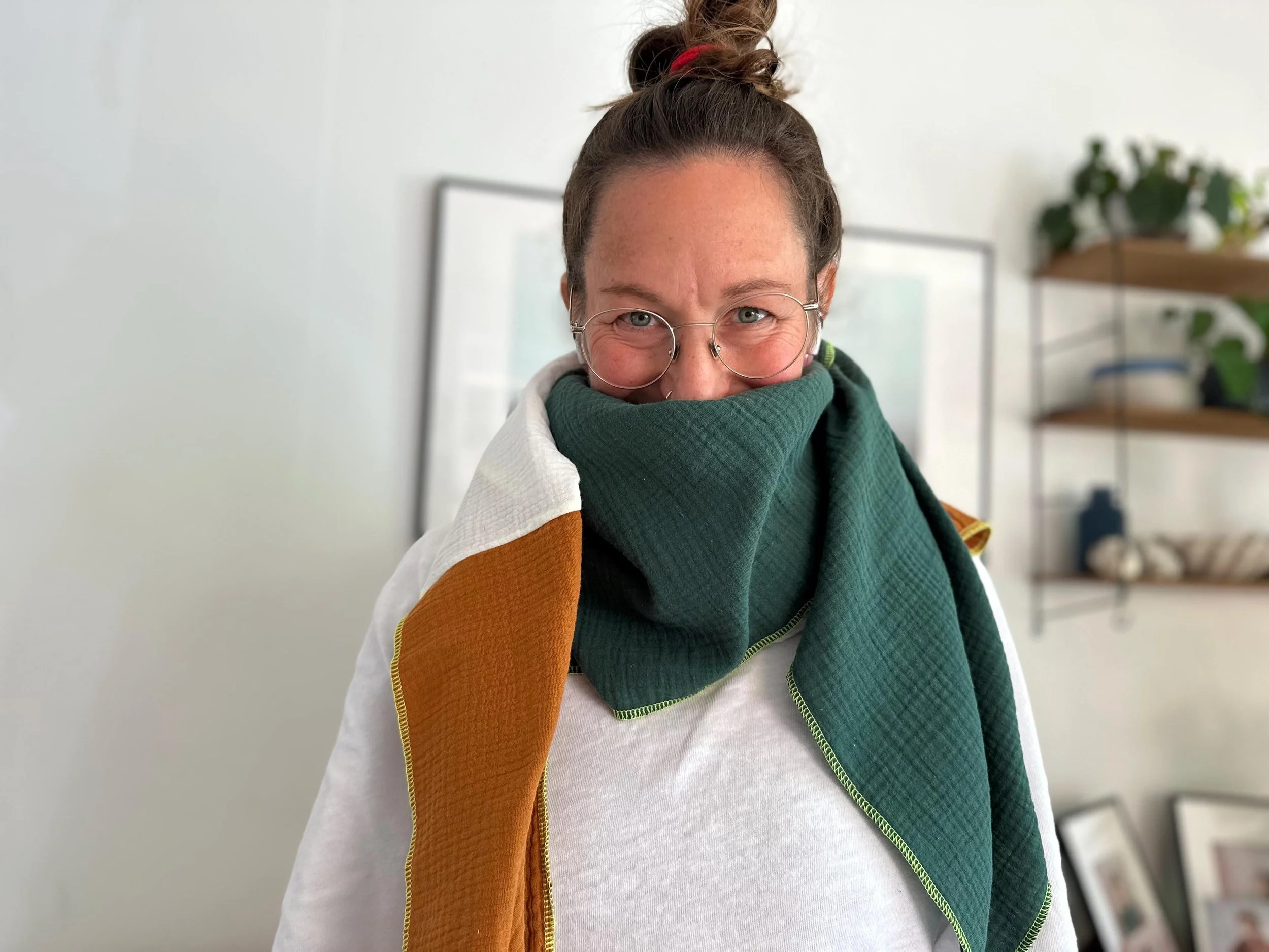 Bei uns zuhause sind die Musselinschals echte Allzwecktücher zum Kuscheln.