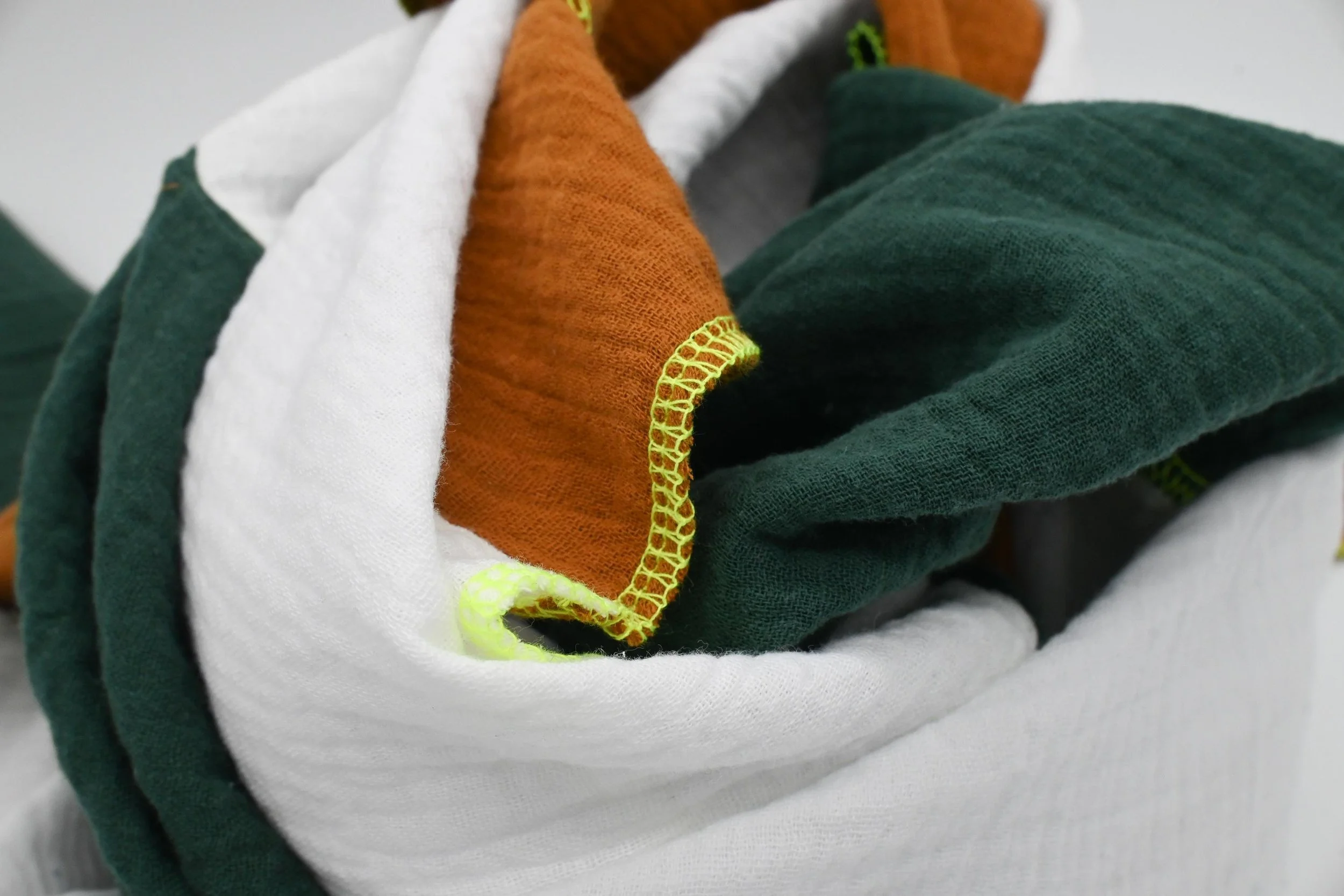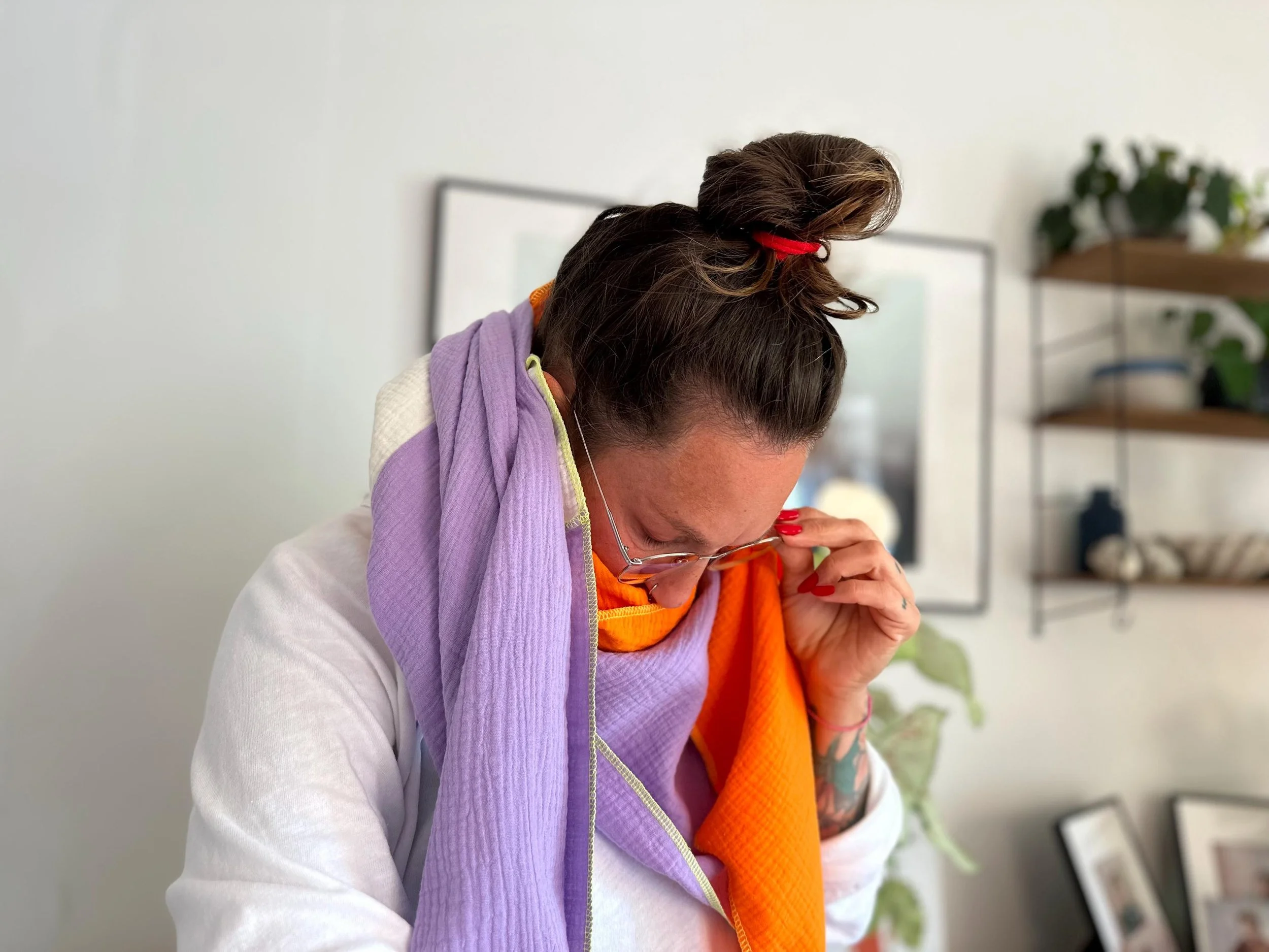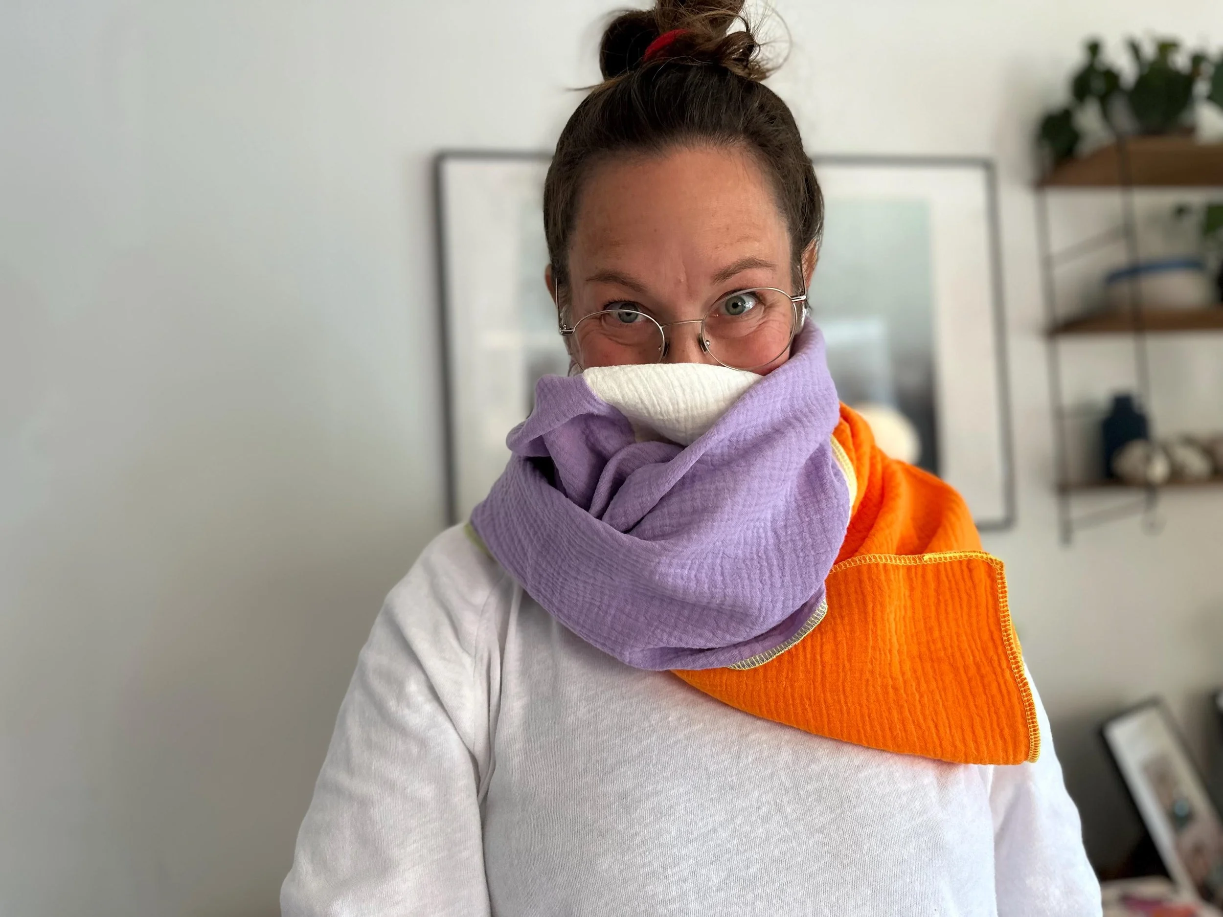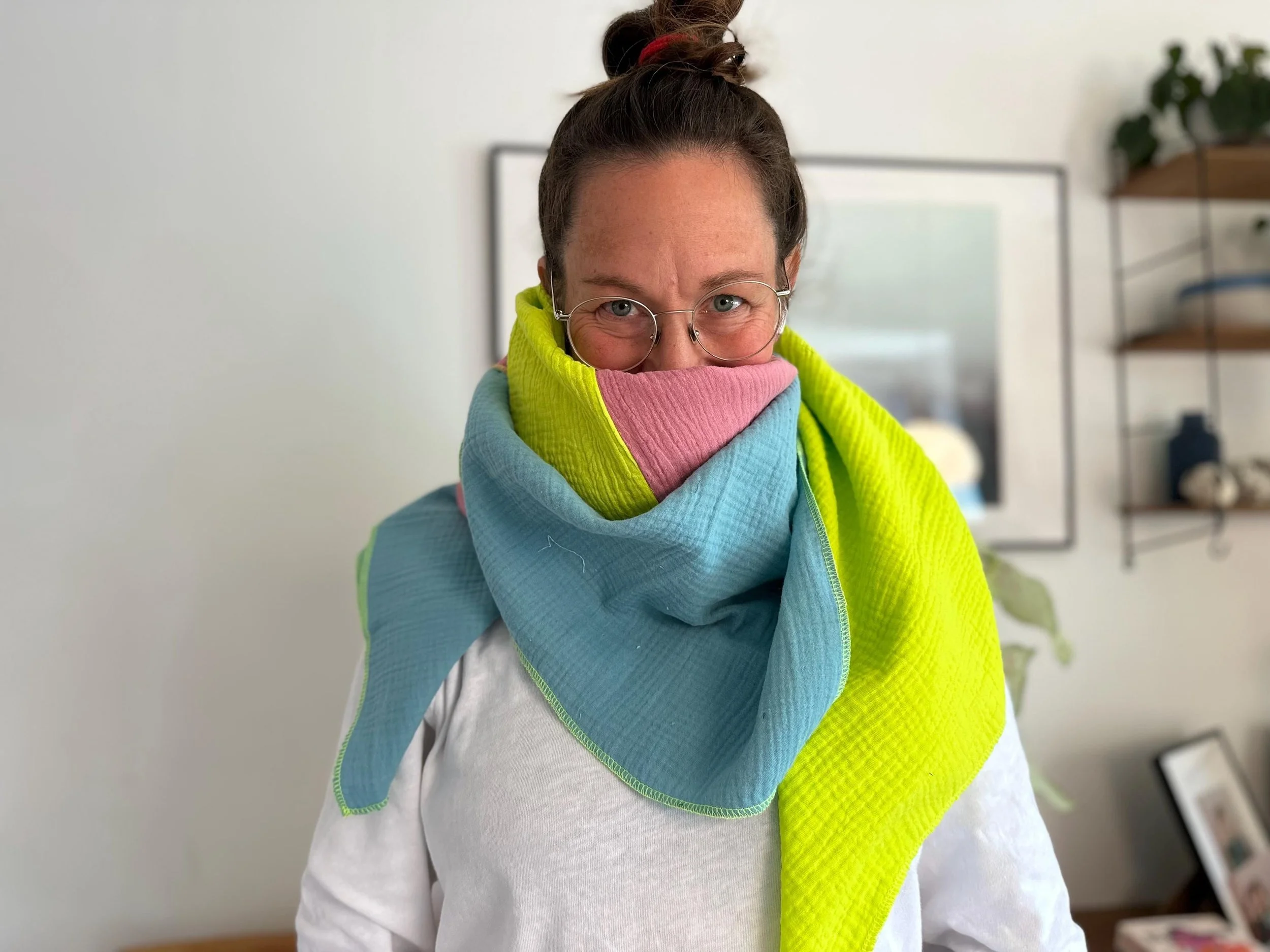 Bei uns zuhause sind die Musselinschals echte Allzwecktücher zum Kuscheln.